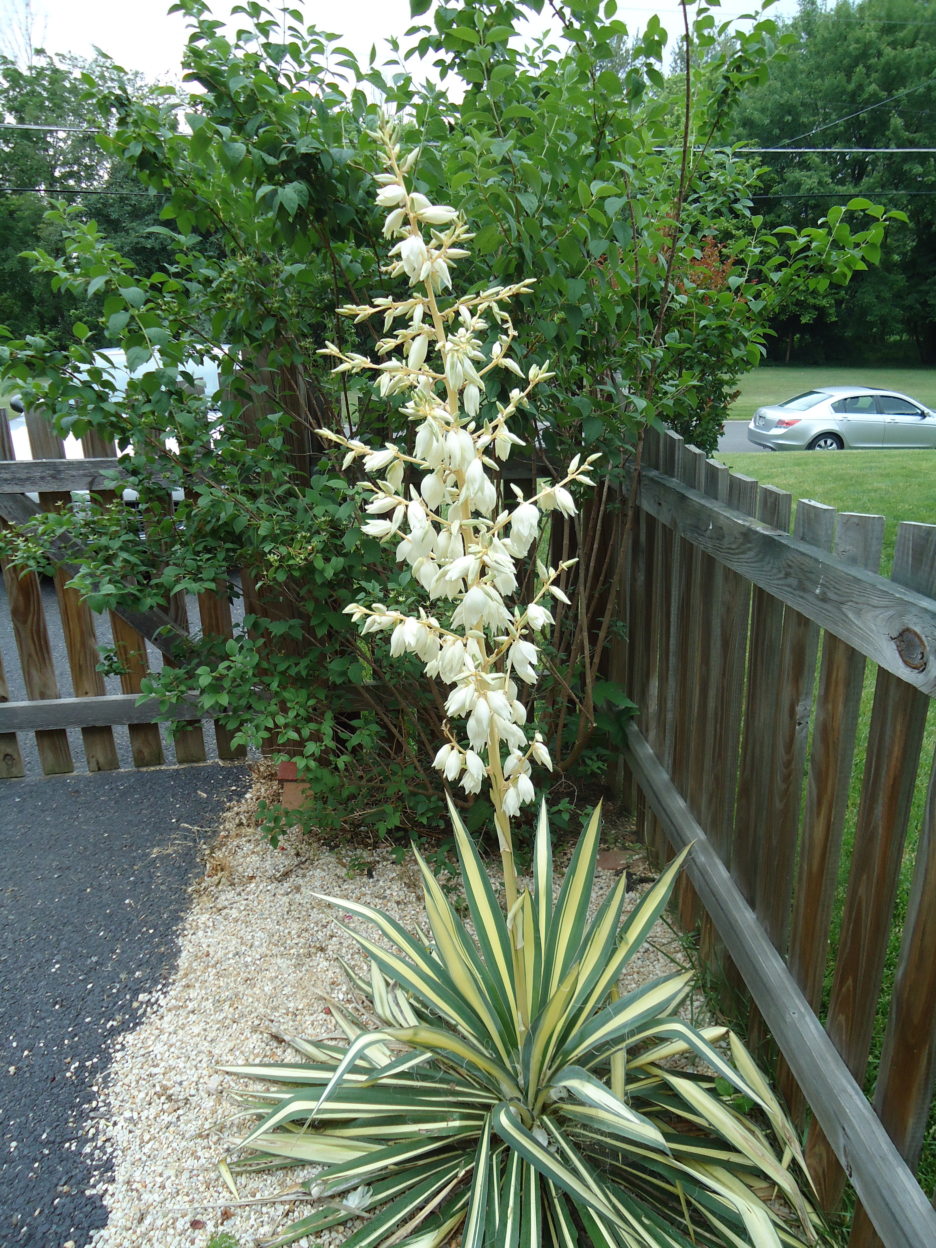 I know it may seem like a small and inconsequential thing, but one of my variegated yucca plants bloomed earlier this summer.  For the last six years, I’ve cared for this plant, which actually doesn’t require much, but this is the first time it has bloomed.  Six years of waiting for the event, which only lasted about a week or so. But it was nice while it lasted.