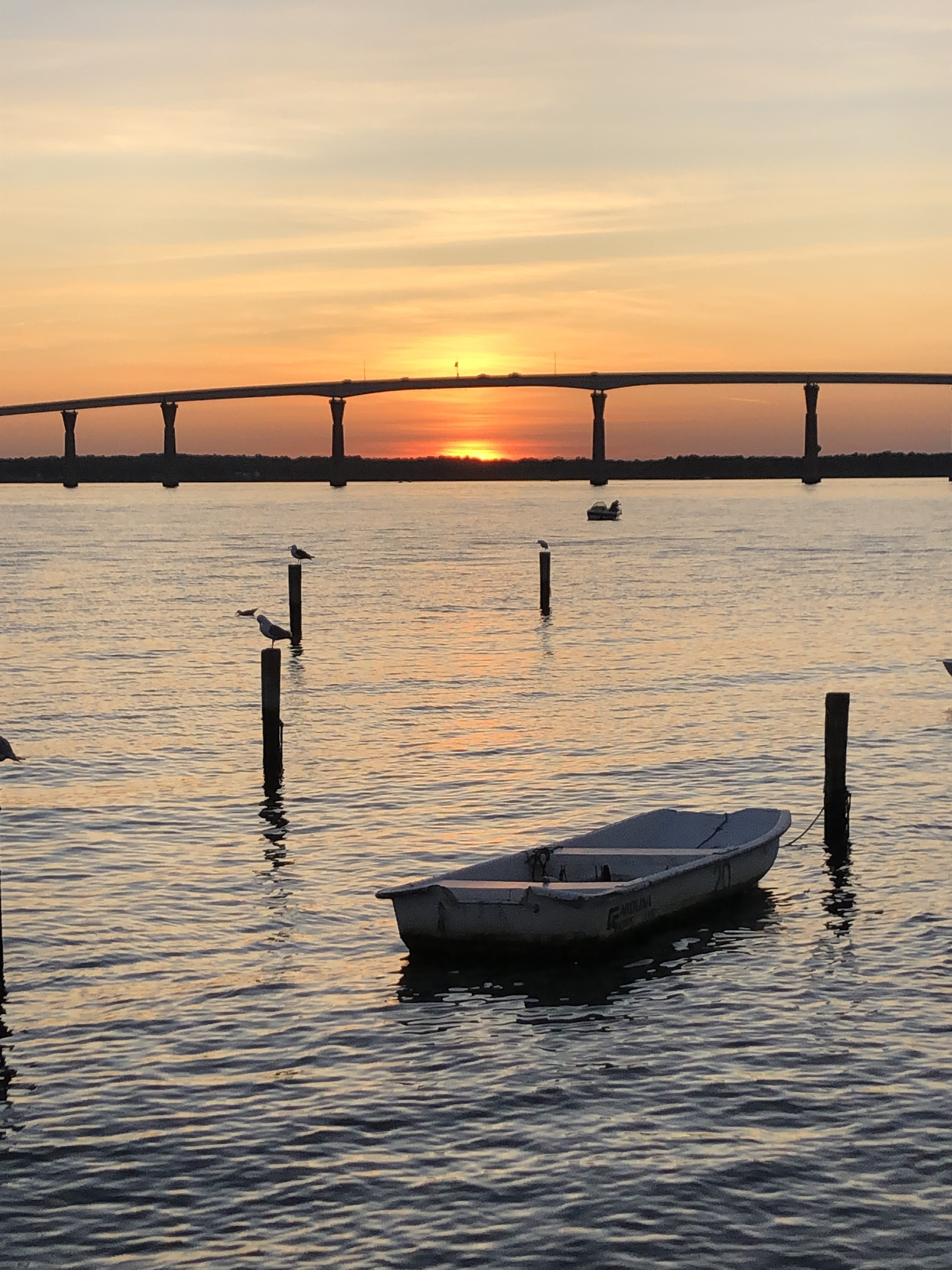 In my area, kids are going back to school today, which generally marks the end of summer. It seems like it flew by this year, and I feel grateful that I was able to get a little R and R in this past week. My sister came in to visit, and we decided to head to a place where neither of us had been. Solomons Island is in Southern Maryland, just a little over two hours away from where I live. It’s not a big resort town like Ocean City, and for that, we were happy. After settling into our hotel, off we went to explore the island, just an easy 30 minute walk down the road. We were surprised that it wasn’t more crowded, given that it was Labor Day weekend, but we were happy to do our part for the local economy. I’m sure the shop/restaurant owners were hoping for the place to be packed with tourists. Maybe next year. Anyway, we did a lot during our three days. From dockside meals, a boat trip, looking for fossils at Calvert Cliffs, more walking miles than I can count, and capturing beautiful sunrises and sunsets, we ended our trip with a hope to return in the not too distant future.